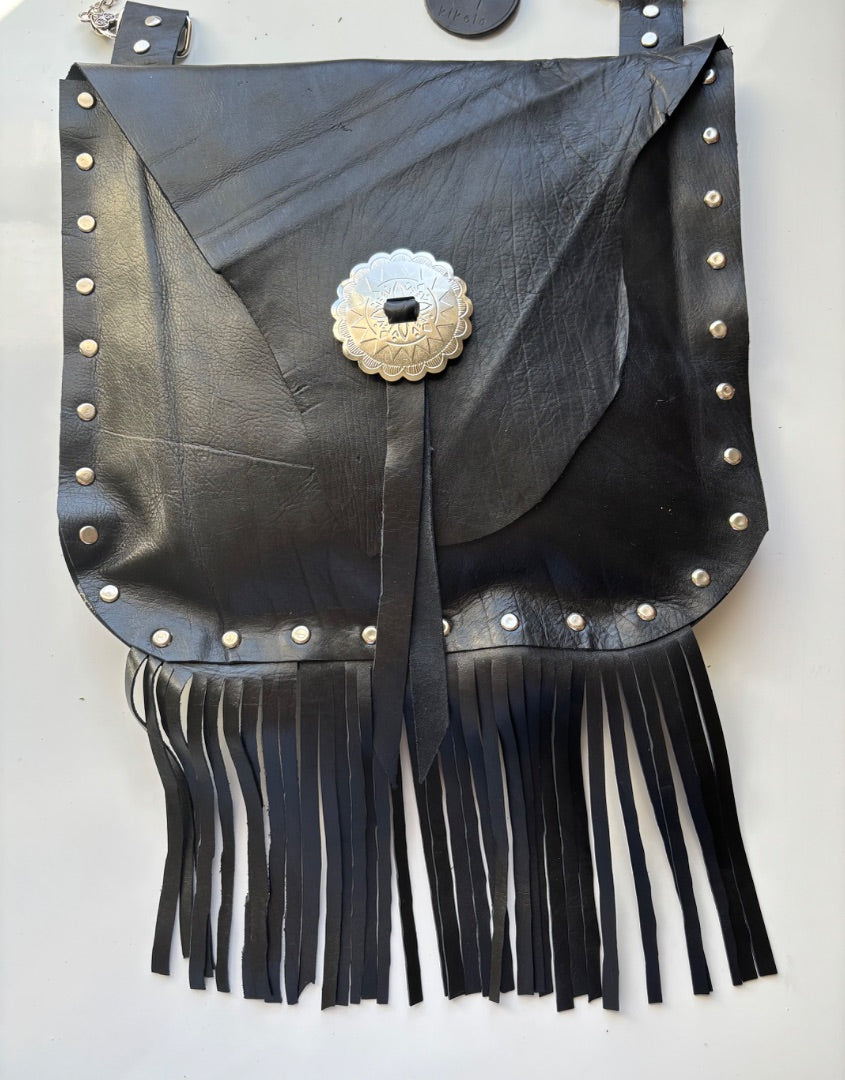 Western fringe crossbody, with silver concho, and chain strap, light leather,handmade.